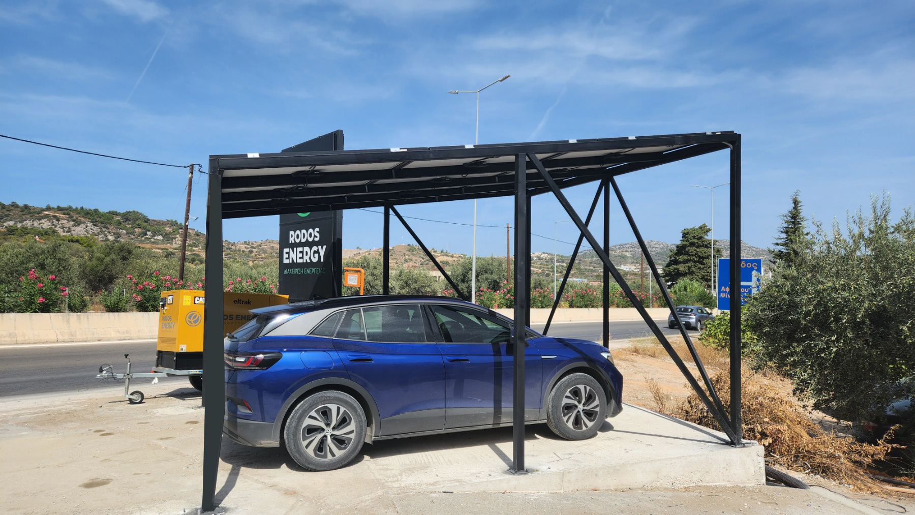 Η Rodos Energy επιλέχθηκε ως εταιρεία για την εγκατάσταση ενός από τα Beta Site στην Ελλάδα προκειμένου να γίνουν οι απαραίτητες μετρήσεις παραγωγής και αποθήκευσης ενέργειας. Η κατασκευή του Beta Site έγινε με την τοποθέτηση 12 bifacial Φ/Β Πλαισίων της JinkoSolar τεχνολογίας N-Type, ονομαστικής ισχύος 440Watt το καθένα, σε μεταλλική πέργκολα η οποία σχεδιάστηκε για να φιλοξενήσει σταθμό φόρτισης ηλεκτρικών οχημάτων τεχνολογίας DC , δημόσιας χρήσης.